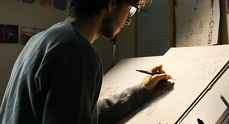 After doing a first pass over your story, I set out to make rough sketches for each scene, and adjust as needed to fit your project's vision. I welcome new styles.